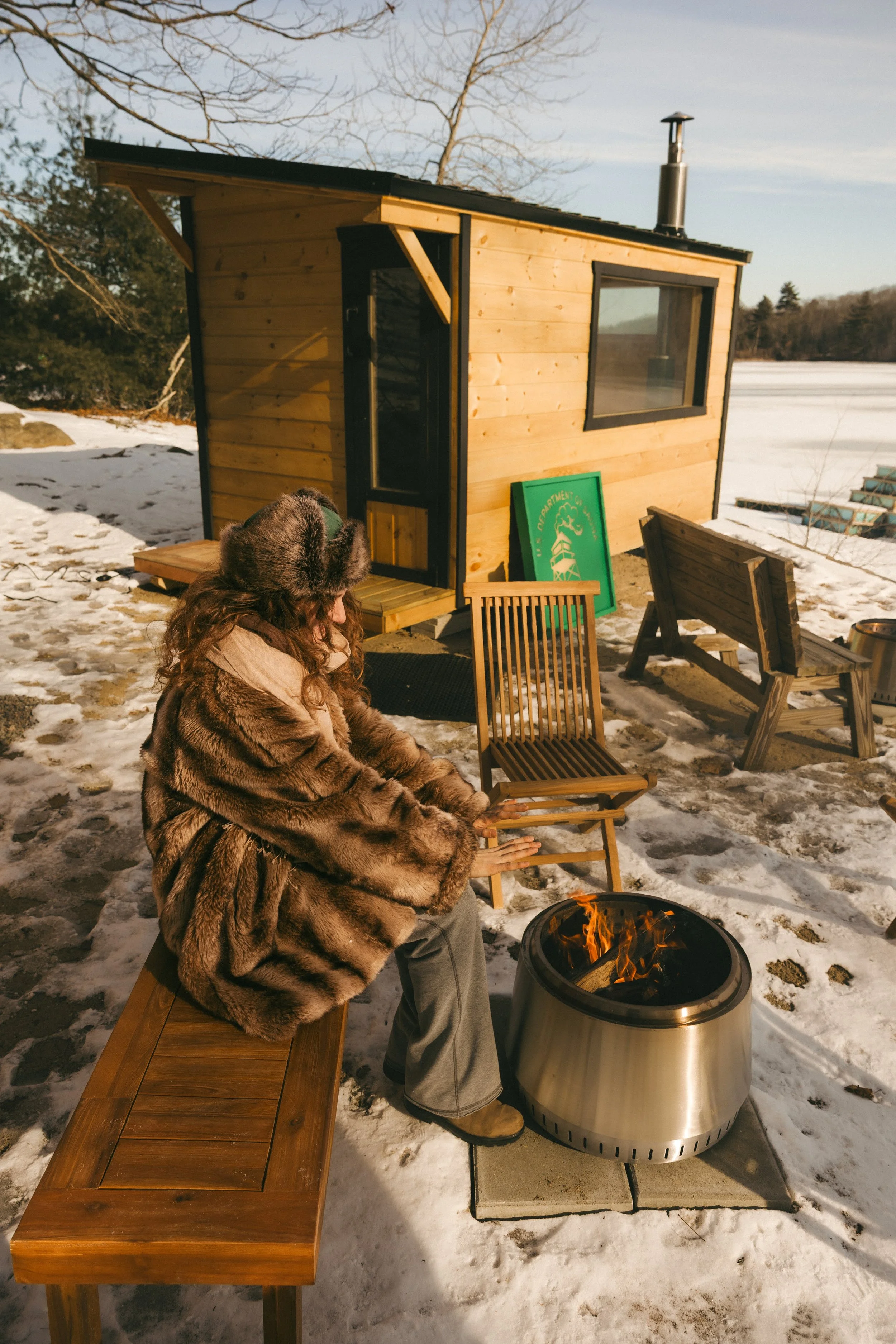 We offer shared, social sessions featuring wood-fired saunas, cold plunges, campfires, and a warming lounge, all immersed in nature.