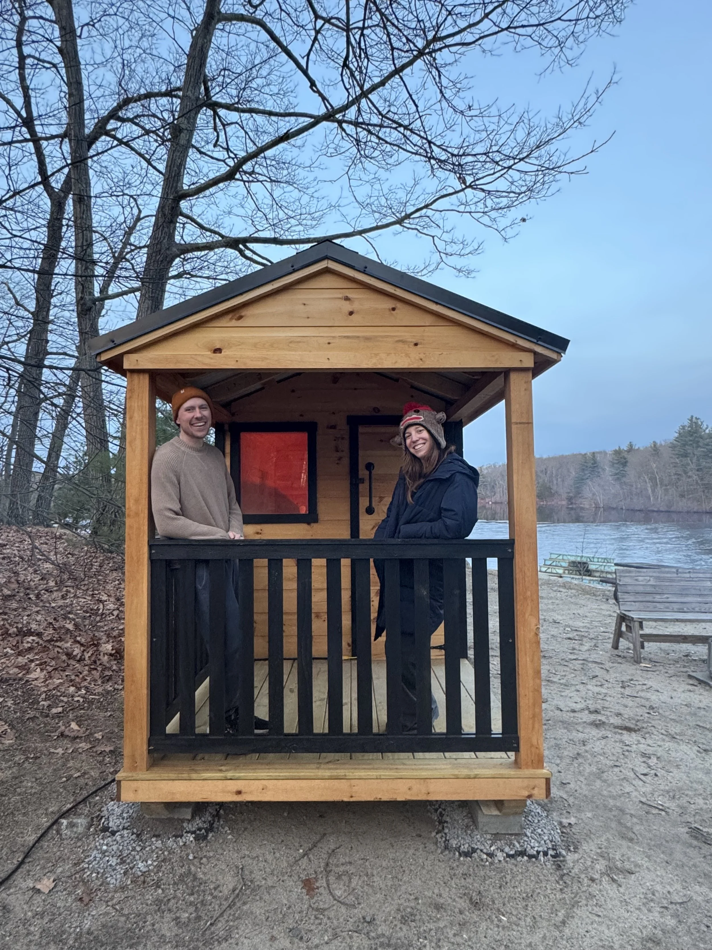 Blake and Lia Wolf are a husband and wife team that left their desk jobs to pursue a life of sauna. For Lia, Firewatch grew out of her love for community and being outside. Through Firewatch, Blake focuses on creating simple, well-considered environments where people can slow down, connect, and experience winter more fully. Blake and Lia discovered sauna together through a shared love of hot tubs. Pursuing hot springs and snow covered hot tubs was the natural gateway to saunas and cold plunges. Blake and Lia are fascinated by the different shapes sauna culture has taken through out the world and are excited to see a growing interest in sauna in Massachusetts.