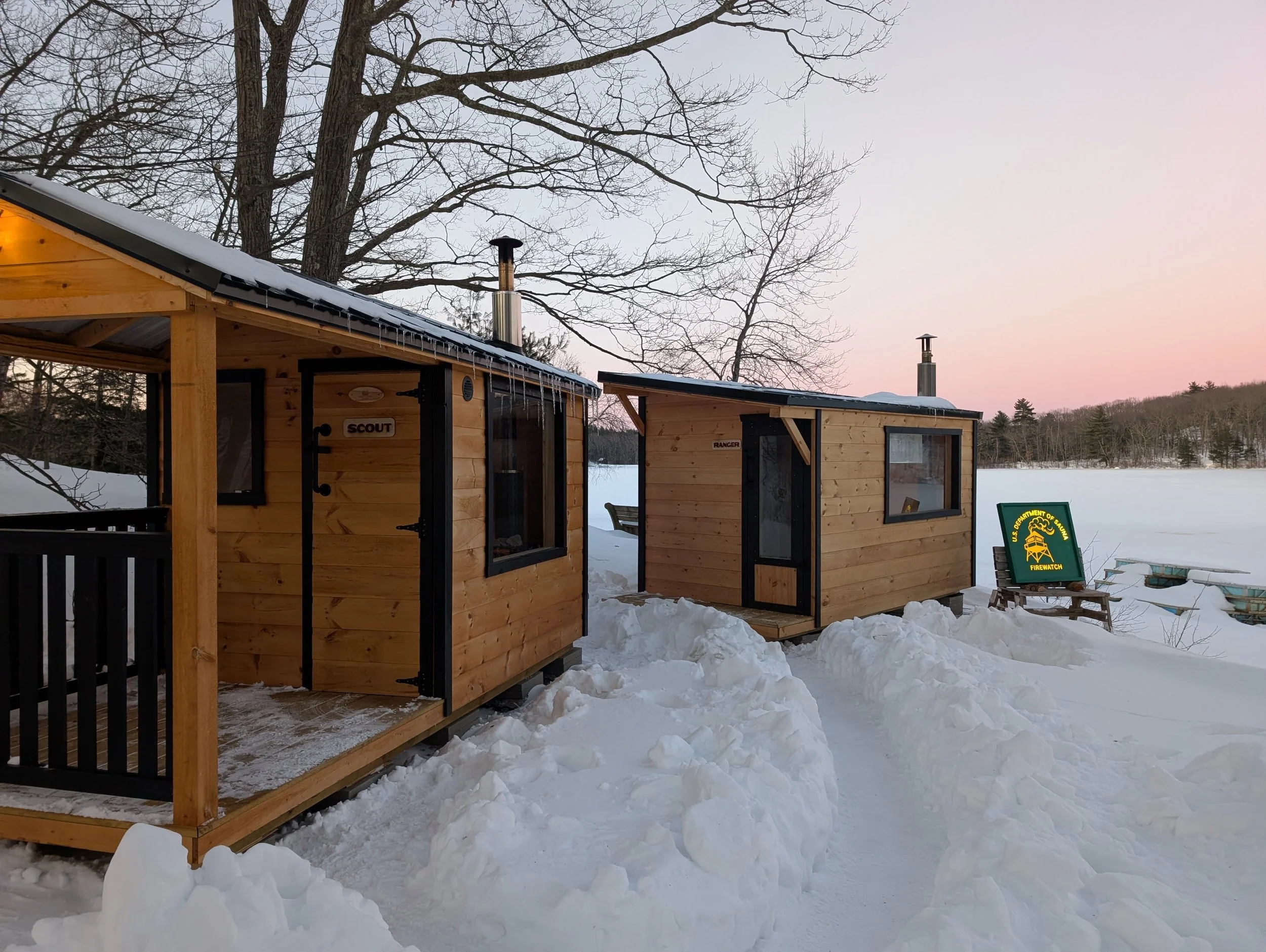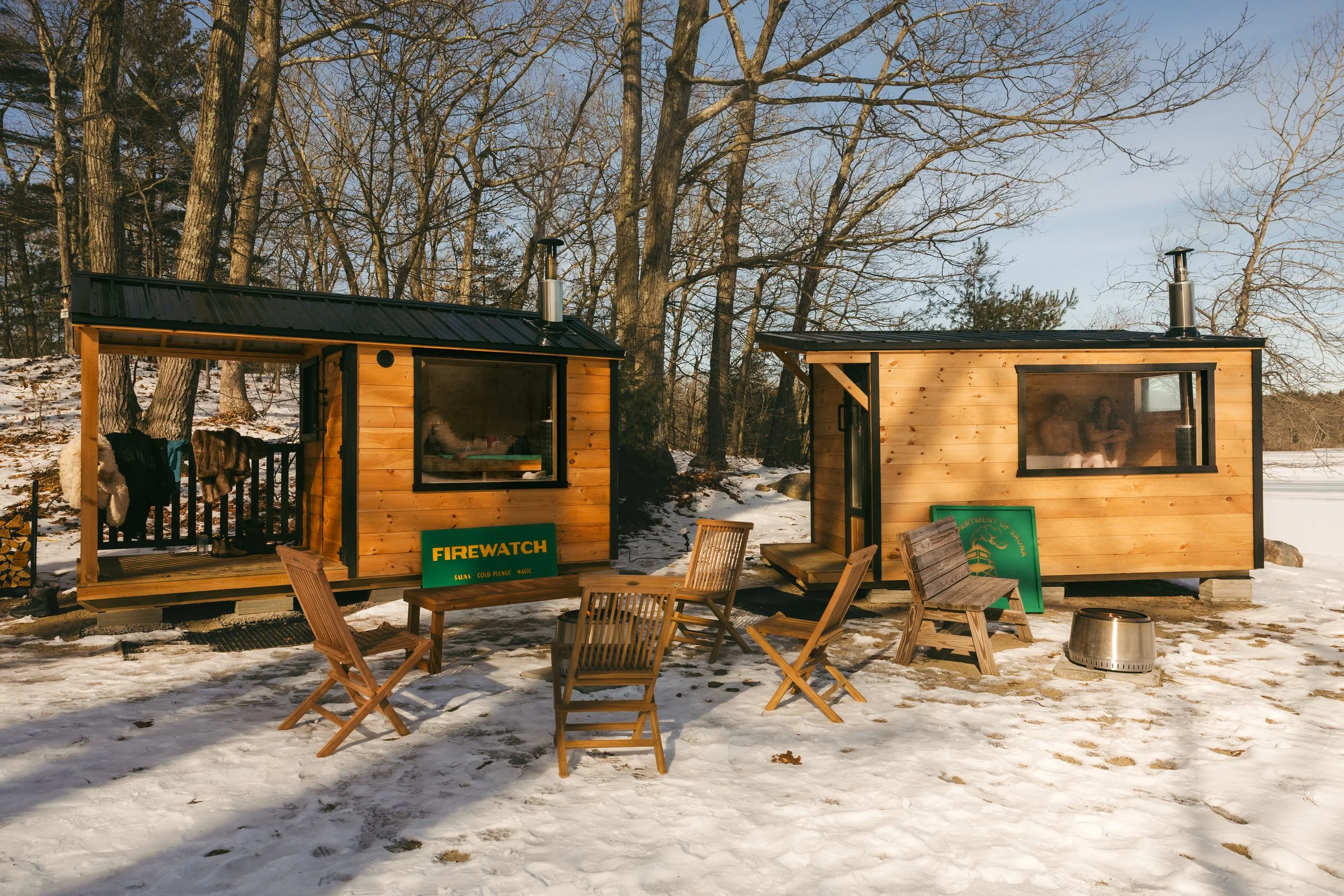 Firewatch is a seasonal, wood-fired outdoor sauna and cold-plunge experience set on the edge of a frozen lake at Hale Education outside Boston. Built around traditional sauna practices, Firewatch pairs high-heat wood saunas with cold-water immersion, open fires, and long pauses to warm up, talk, and watch the light change over the water. Sessions are communal, not rushed, and designed to make winter something to enjoy. Firewatch runs Thursday through Sunday every week through mid-April and focuses on simple, elemental experiences rooted in heat, cold, and time outdoors.